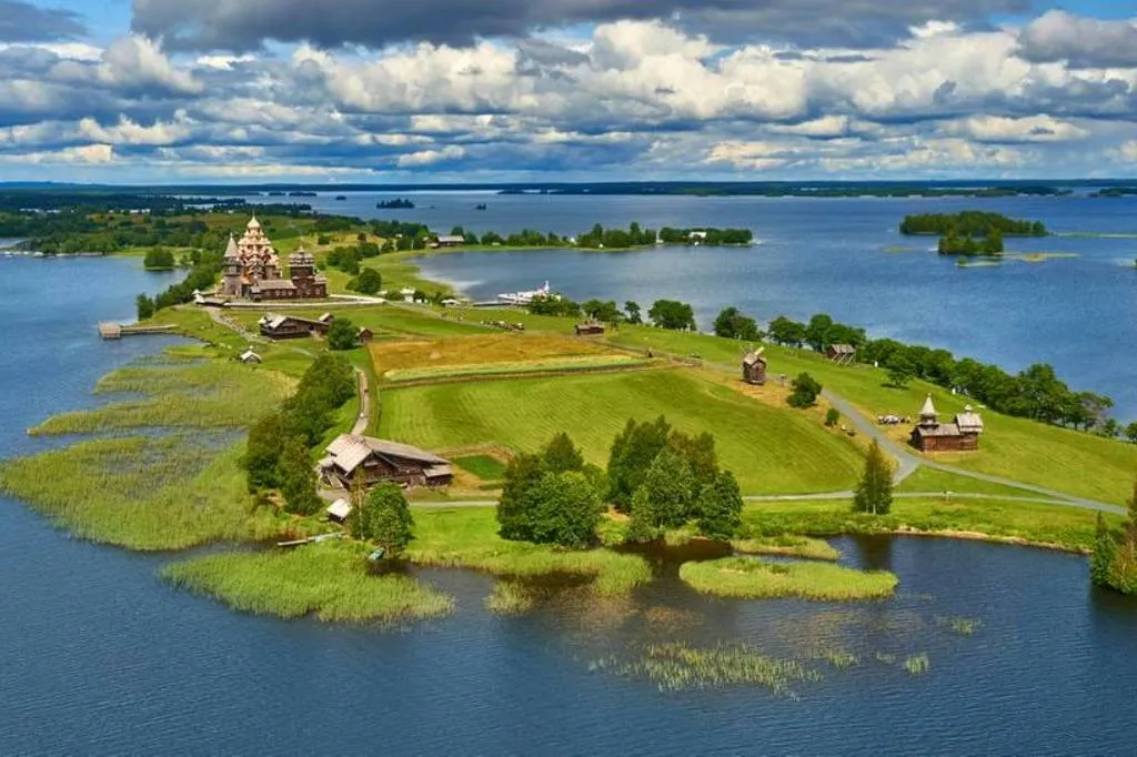 Кижи — самый сказочный и необычный остров Русского Севера, расположенный в одном из самых больших озер Европы — Онежском озере — в 68 км от Петрозаводска, столицы Карелии. На одноименном острове и прилегающих к нему островах расположен Государственный историко-архитектурный и этнографический музей-заповедник «Кижи», коллекция которого включает часовни, крестьянские дома, множество хозяйственных построек (амбаров, риг, бань) и другие строения. Основа музея-заповедника — всемирно известный архитектурный ансамбль «Кижского погоста» — включен в список Всемирного наследия ЮНЕСКО. Сердцем архитектурного ансамбля является грандиозная и величественная 22-главая церковь Преображения Господня, построенная, согласно легенде, без единого гвоздя местным зодчим Нестором в 1714 г. Согласно легенде, после постройки Нестор выбросил свой топор в воды Онежского озера и сказал: «Такой церкви никогда раньше не было и после больше не будет!»