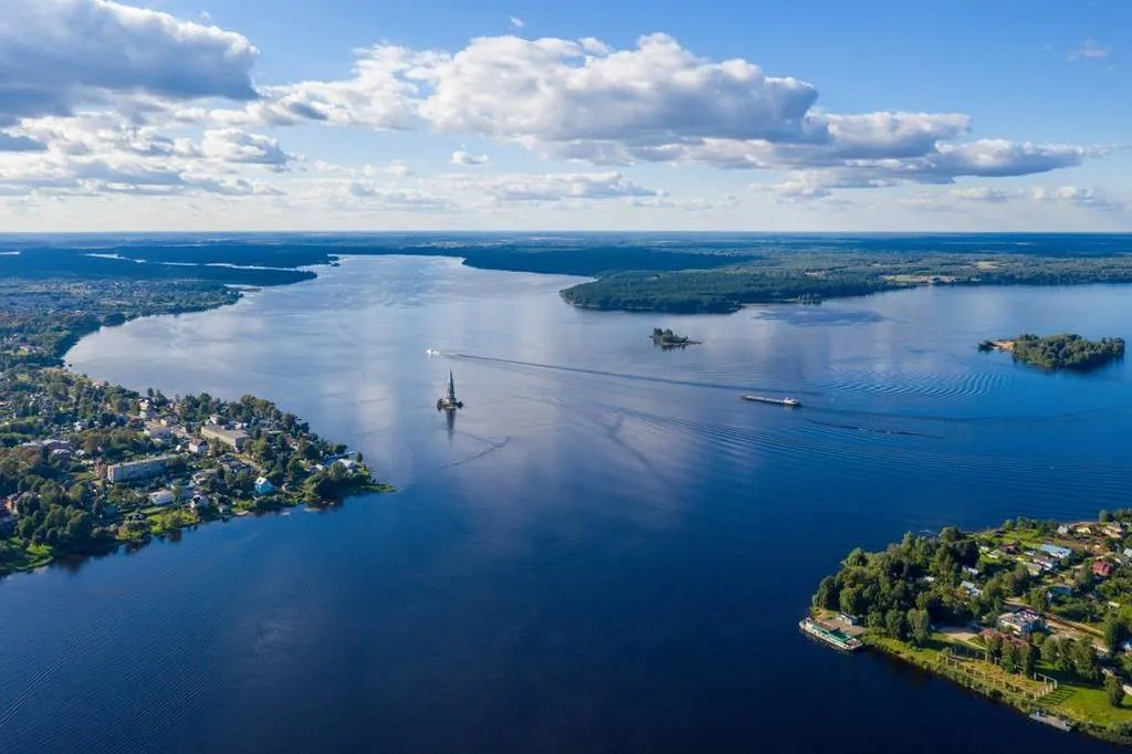 Калязин — слобода при Троицком (Макарьевском) монастыре, известная с XII в. и получившая имя владельца этих мест Ивана Каляги. Статус города обрела в XVIII в. Калязин был городом преуспевающих купцов и ремесленников, известный своими цветными изразцами и кружевами. В 40-х годах XX в. значительная часть города была затоплена при сооружении Угличского водохранилища. Символ нынешнего Калязина — изящная колокольня Никольского собора (1800 г.). Раньше собор находился на главной городской площади, а теперь лишь колокольня одиноко возвышается над гладью водохранилища и являет собой уникальное и трогательное зрелище.