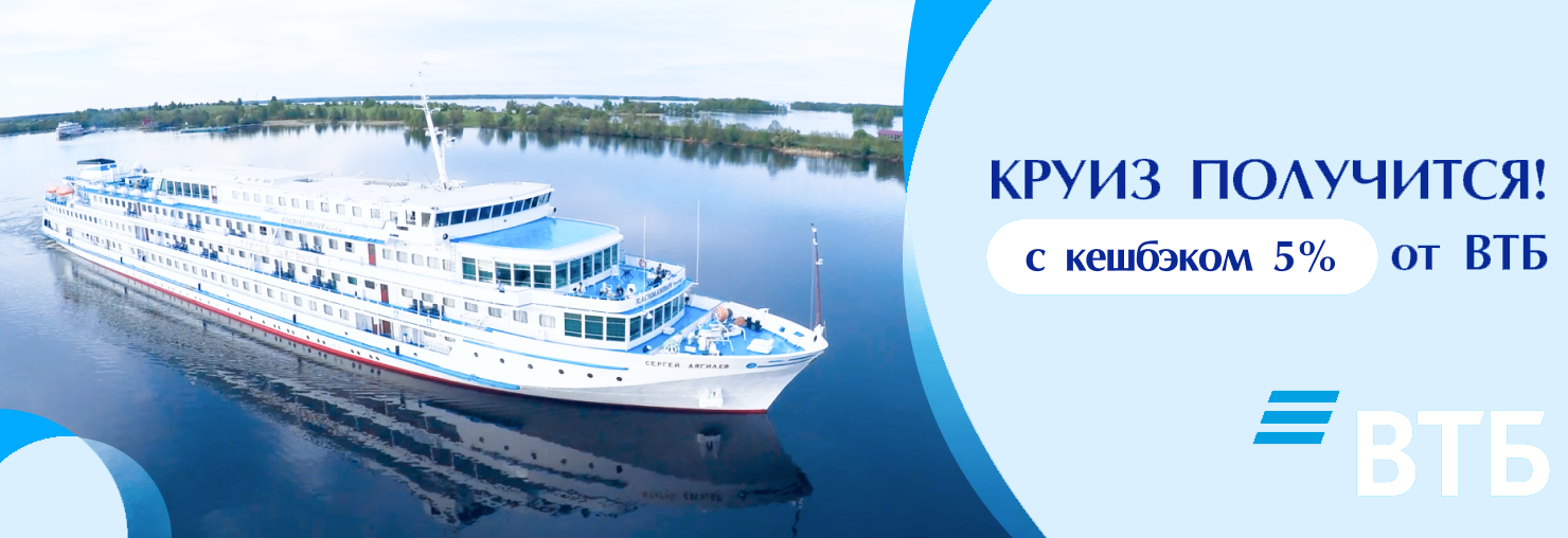 Оплачивайте круиз картой ВТБ и получайте кешбэк 5% на карту уже в следующем месяце после оплаты.